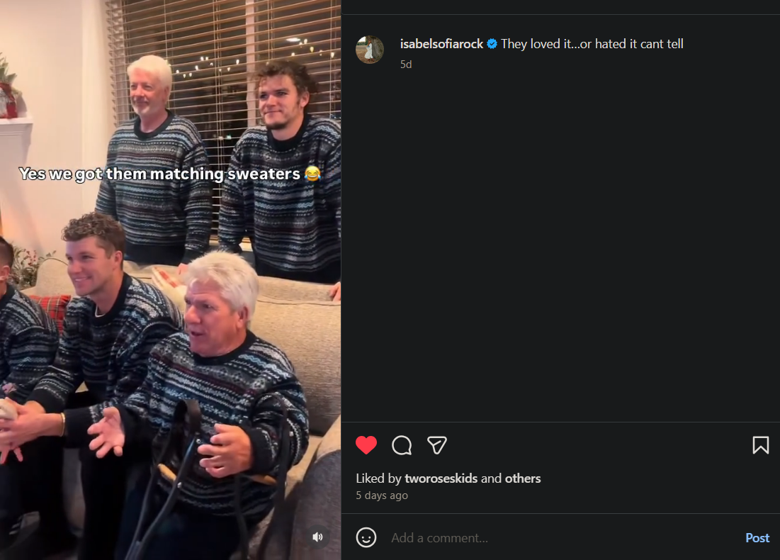 "Yes, we got them matching sweaters," on December 26, Isabel posted on Instagram. "They loved it…or hated it can't tell."