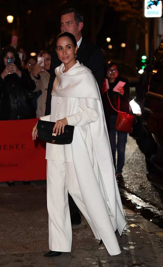 Meghan Markle made an effortless debut at Paris Fashion Week on October 4, 2025, stunning in a chic white cape.