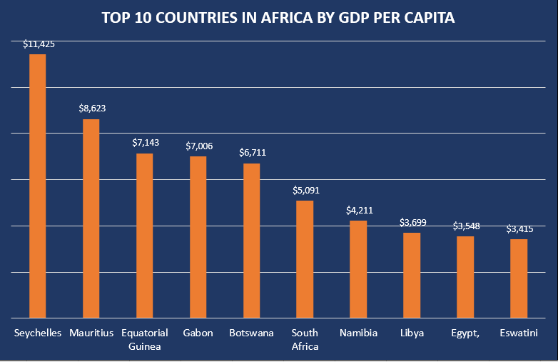 The table above shows Nigeria's GDP per capita: 'Nigeria’s GDP per capita stood at $2,097.09 in 2020 to rank 17th on the list of African countries, representing a 6% decline compared to $2,229.86 recorded in the previous year.'