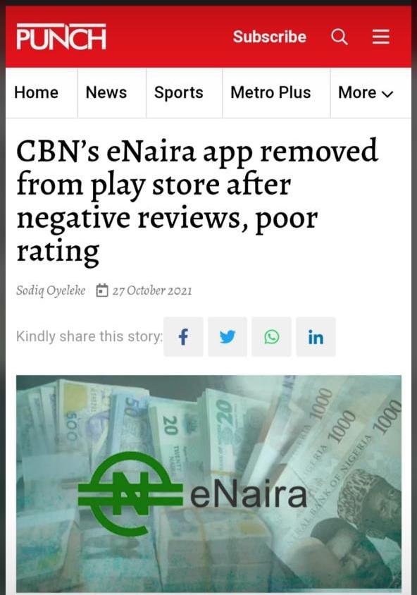 Painful. Even to make a simple app. I hope they have not paid the Caribbean company. Google, please be gentle. Nigeria’s eNaira Speed Wallet app is no longer in Google Play Store. The last time I checked, the reviews were unusually low for a simple app students in UniAbuja looking for extra cash could have made! We hope it returns… this is the direct link in case you want to be checking.