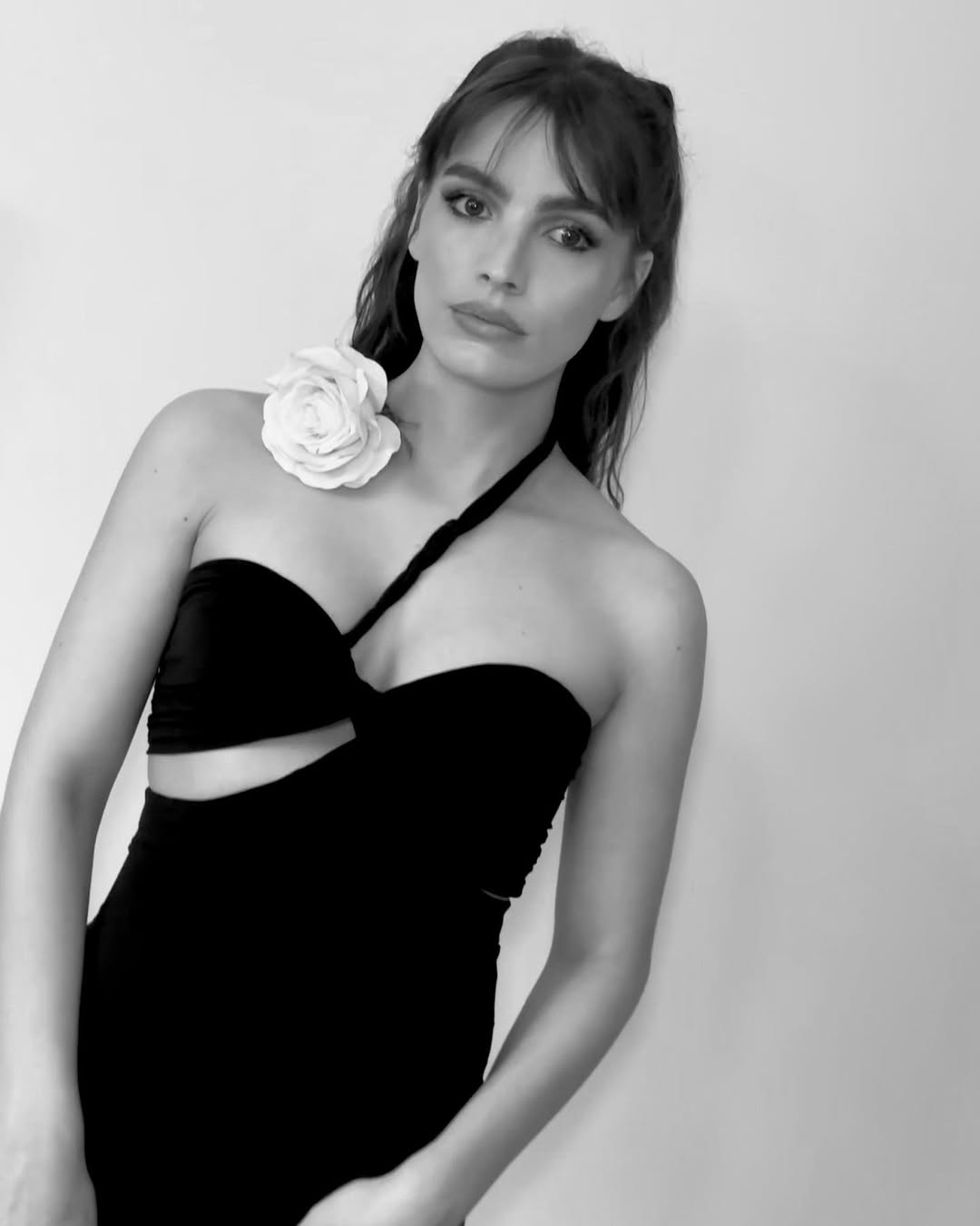They as well paused for pictures together, with Pedro looking suave in his black slacks, white dinner jacket, and polka-dotted neck scarf, and Lux looking stunning in her black halter dress with cutouts across her torso.