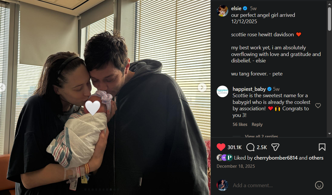 When Elsie announced Scottie's arrival last month, she said she was immediately enamored with her child and referred to her as "our perfect angel girl."