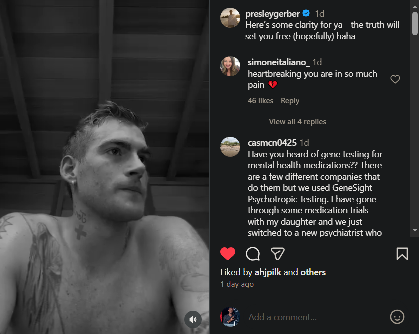 Presley Gerber is concerned about his health. The son of Cindy Crawford and Rande Gerber presented a detailed overview of his mental health struggle and the many drugs he is taking to manage his challenges.