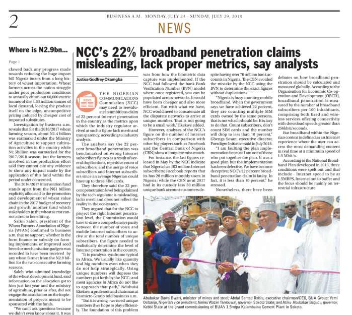 We have a press quote on Business A.M. today. It is on the second page in case you want to buy the paper. The article is titled NCC's 22% broadband penetration...