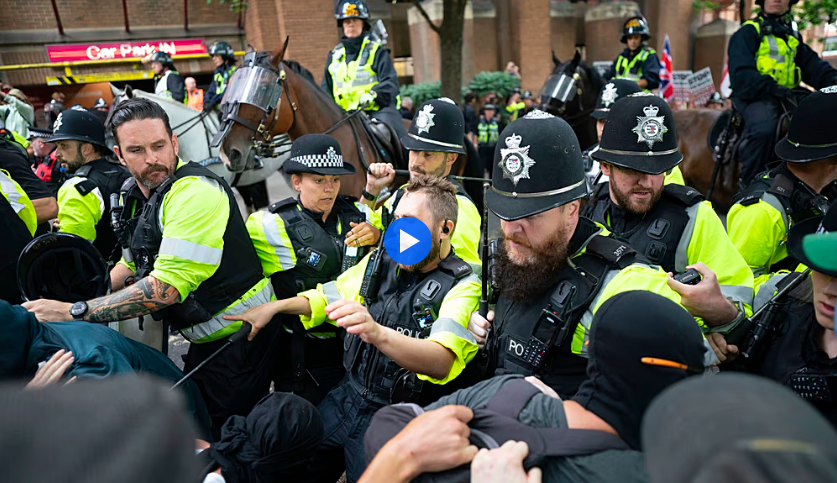 Police presence was heavy, with officers seen leading protesters away from the Abolish Asylum System march and pushing back counter-demonstrators to prevent violent clashes.