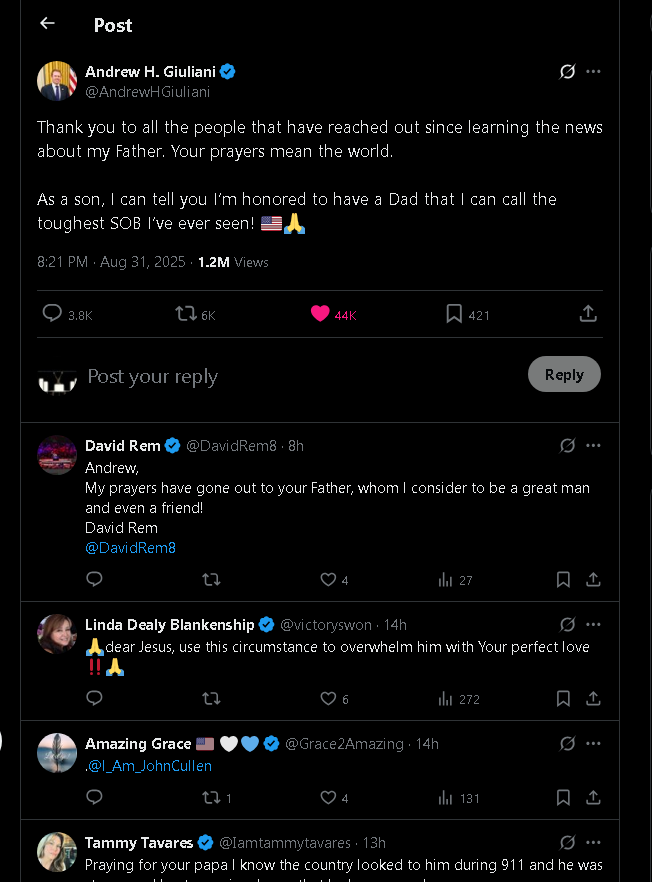 In the meantime, Giuliani's son Andrew thanked everyone for their family's well wishes since the accident.