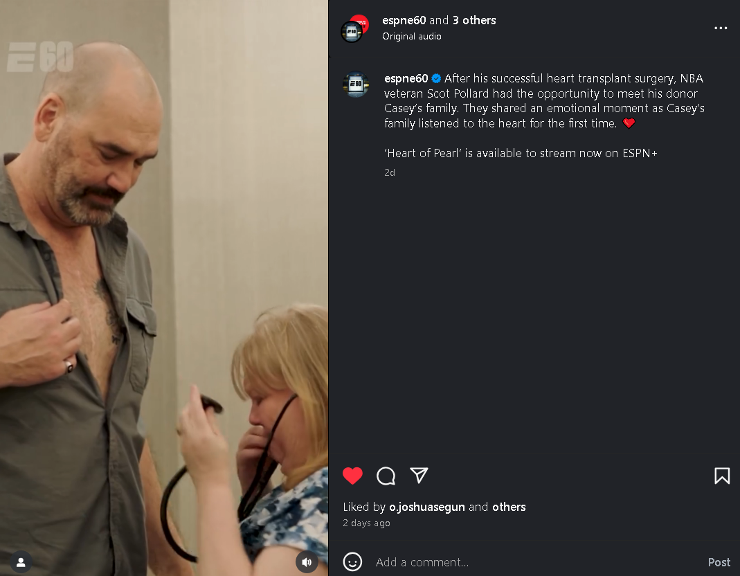One person in particular is responsible for Scot Pollard's survival. As part of a poignant ESPN documentary titled Heart of Pearl, the former Survivor contestant, who competed on the CBS show from 2015 to 2016, revealed that he underwent a heart transplant in February 2024 and was finally able to meet and thank his donor's family in person.