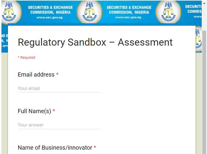 If you are a business or individual (registered or planning to register with SEC) that plans to launch such innovation, you are requested to fill the questions contained in this form to enable the SEC provide guidance to the tester on regulatory requirements (if any).