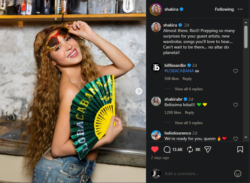 “Almost there, Rio!!!” on April 25, she posted on Instagram. “Prepping so many surprises for you: guest artists, new wardrobe, songs you’ll love to hear… Can’t wait to be there…”