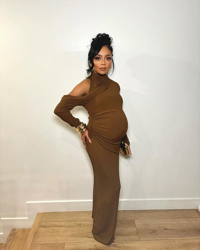 And since revealing her news she's had her bump on display. Including at the December premiere of her latest film Man in the White Van, where Skai sported a skintight brown dress. Below photos from the event posted to social media, her pals made sure to shower her with love, and Keke Palmer writing in the comment section, “My sisterrrr.”