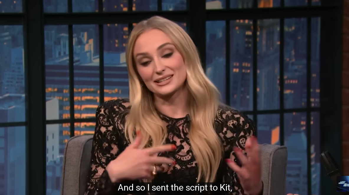 Sophie recounted on August 14 on Late Night With Seth Meyers, "I sent the script to Kit." “He sent me a message back, going, like, ‘Yeah, I'd love to. This is going to be really f--king weird, Soph.’”