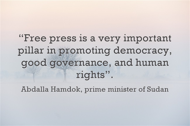 “Free press is a very important pillar in promoting democracy, good governance, and human rights”. - Abdalla Hamdok, prime minister of Sudan, at the UN.