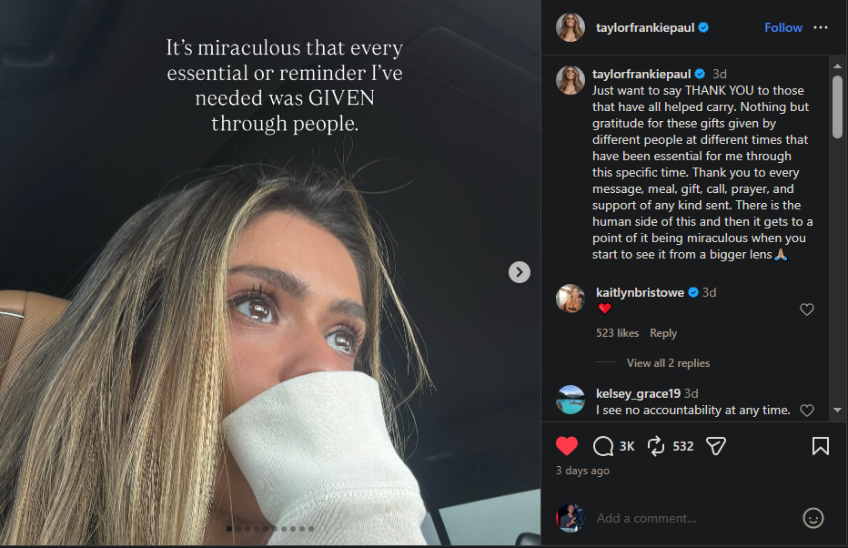 Taylor Frankie Paul expresses gratitude to her supporters during an ongoing custody battle with ex, Dakota Mortensen