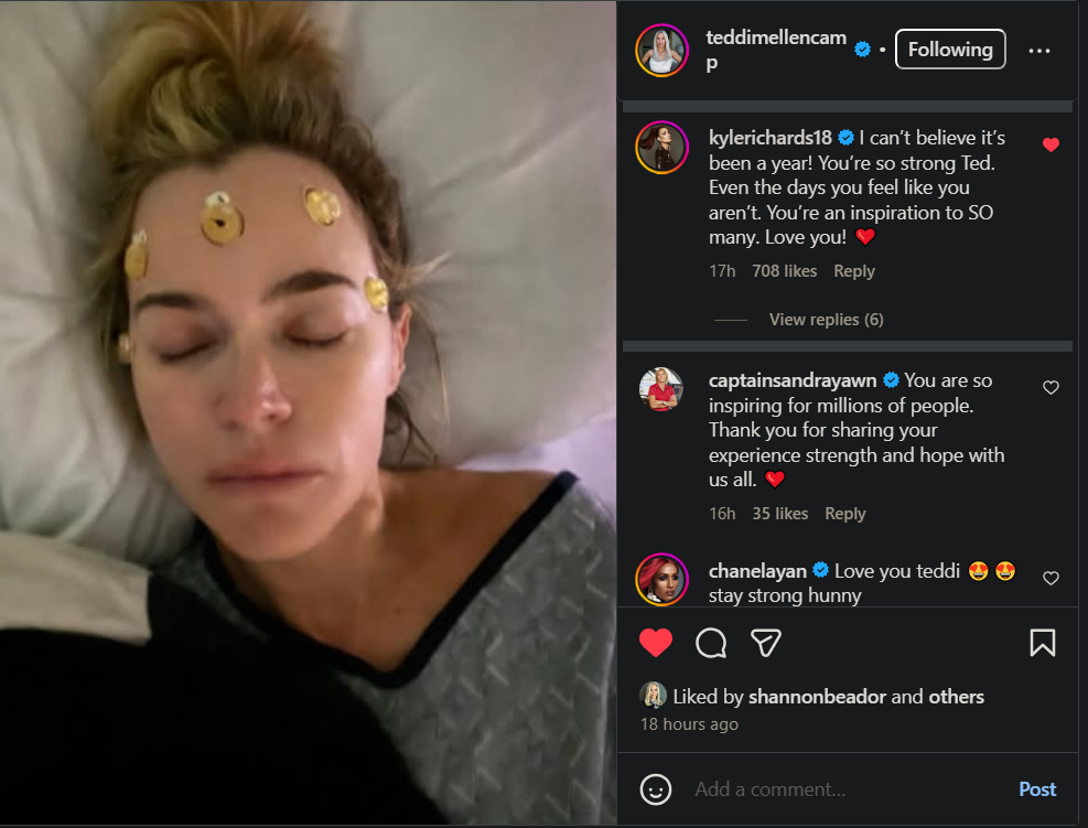 Among the pals who offered support to the reality star was Kyle Richards, her former co-star on RHOBH, who said she "can't believe it's been a year" since Teddi's diagnosis.
