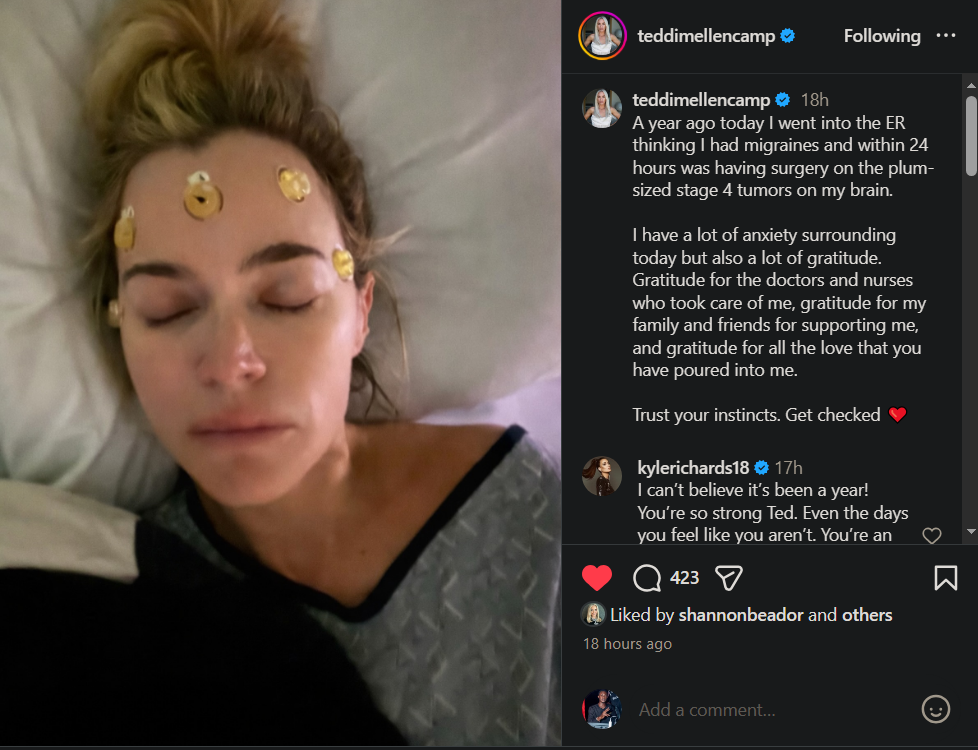 “A year ago, today I went into the ER thinking I had migraines,” on February 9, she posted something on Instagram. “And within 24 hours was having surgery on the plum-sized stage 4 tumors on my brain.”