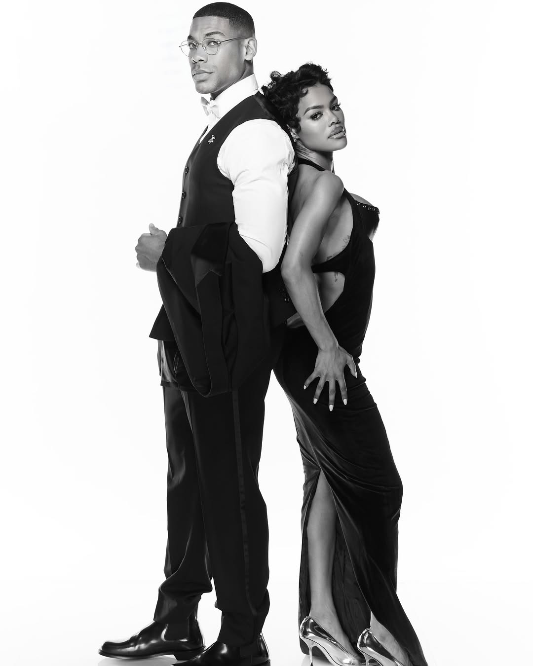 But that wasn’t Teyana’s only look of the evening. In a post on her Instagram page, she shared a series of black and white photos—which appear to have been taken at Beyonce and Jay-Z’s Oscar Gold Party—striking various poses alongside Aaron in a dark, backless gown.