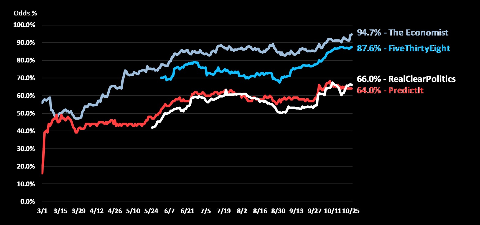 The Economist is so sure that Biden will win. The good news about elections is that it is the only polling that has hard results at the end. Yes, there would be voting processes and results would be announced. I do think the polls would be correct this time around as they must have fixed some of the 2016 issues.