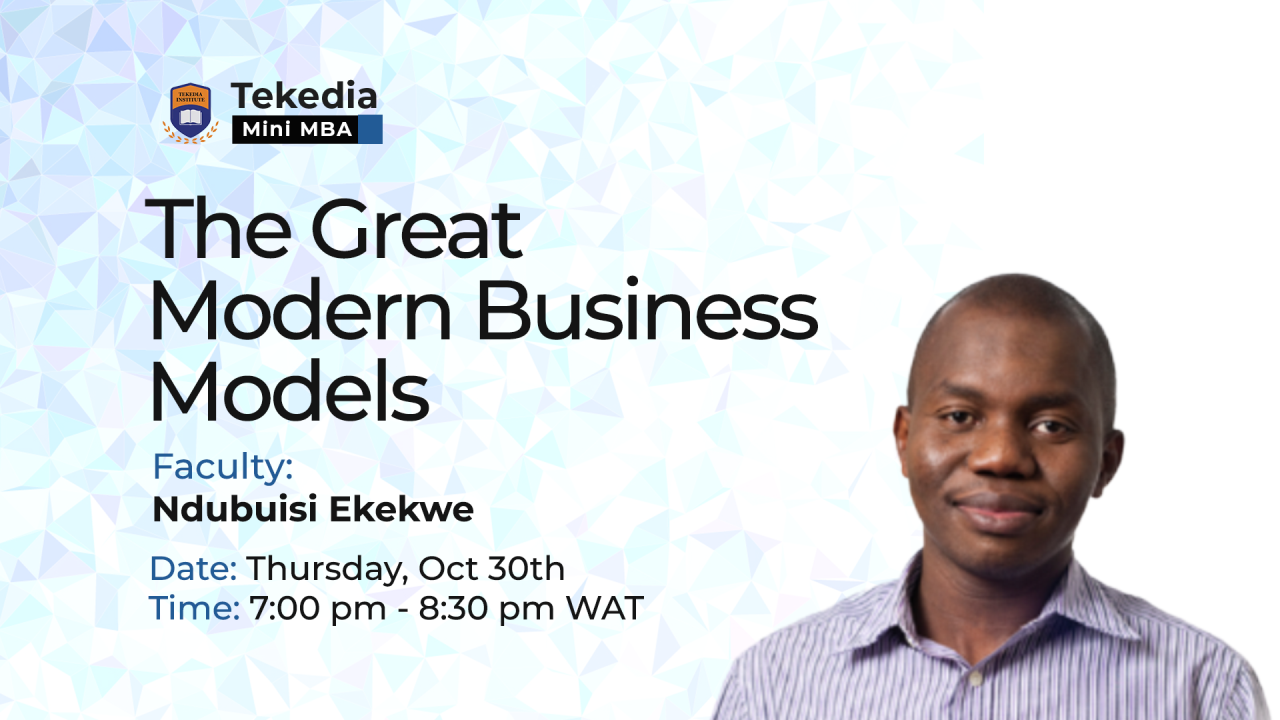 Thur, Oct 30 | 7pm-8pm WAT | The Great Modern Business Models – Ndubuisi Ekekwe | Zoom link