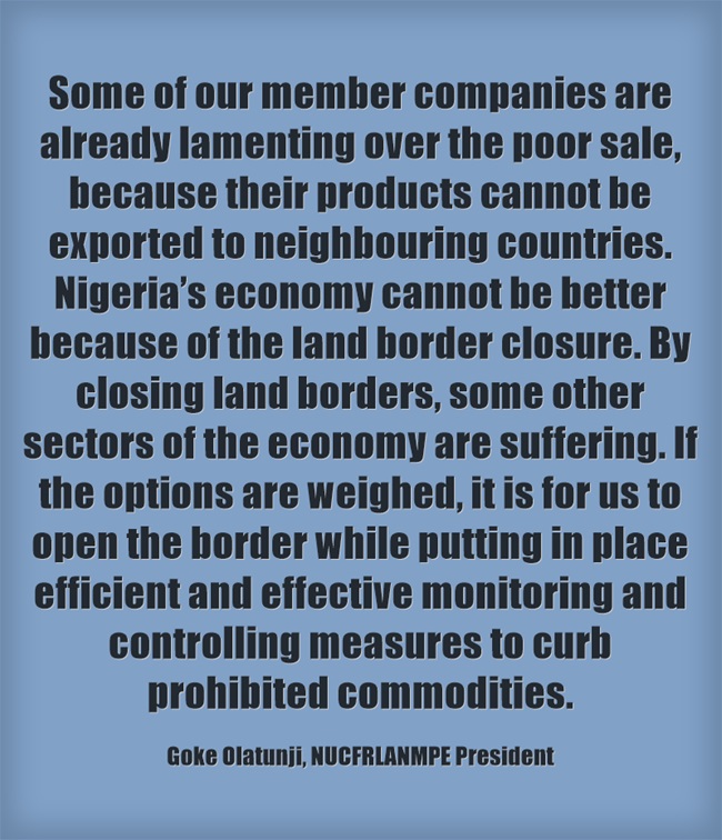 The National Union of Chemical Footwear Rubber Leather and Non-Metallic Products Employees (NUCFRLANMPE) President, Goke Olatunji, has a message, on land border closure. Nigeria needs to listen to him.