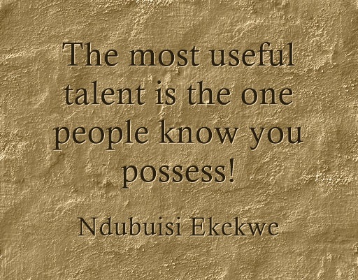 Quote from Ndubuisi Ekekwe on June 26, 2019, 8:13 PMThe most useful talent is the one people know you possess!