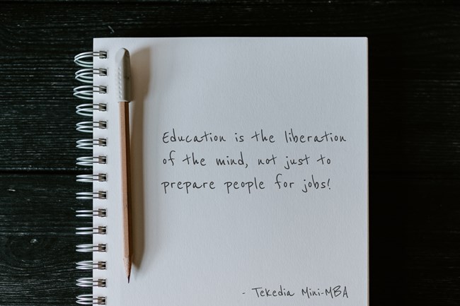 Education is one of the most important institutions ever invented. It determines the wealth and prosperity of any society. Even in the medieval time, there was apprenticeship, and that was a form of education. Nothing changes a society or a nation more than education. And I always say - education is simply the liberation of the mind. Nigeria, build mines of knowledge.