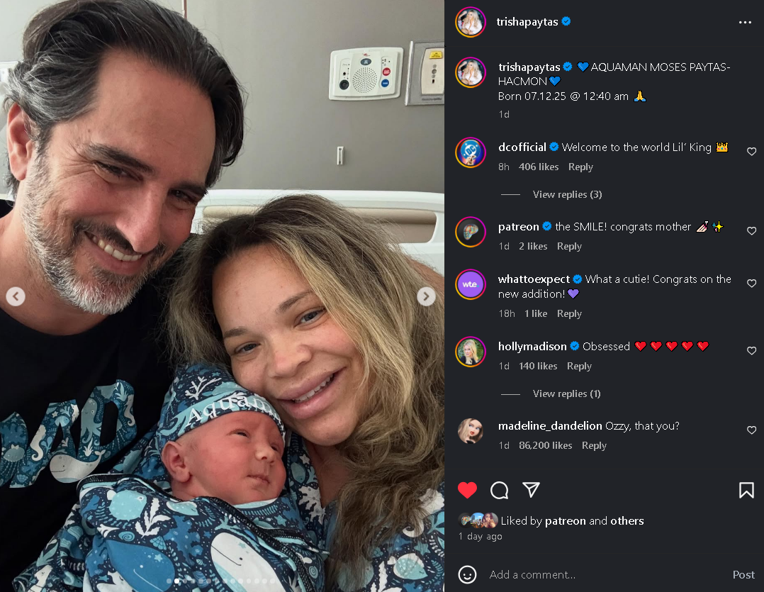 Trisha Paytas almost took a risk when deciding on a name for her son. The YouTuber disclosed that she and her water-loving husband were considering another name based on one of Moses Hacmon's poems while announcing the birth of their third child, a son named Aquaman Moses Paytas-Hacmon.