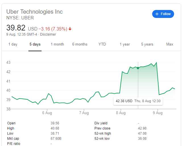Quote from Ndubuisi Ekekwe on August 9, 2019, 12:37 PMUber, the world’s biggest ride-hailing company lost $5.2 billion last quarter. Also, it reported its slowest-ever revenue growth. The stock took a hot bath.