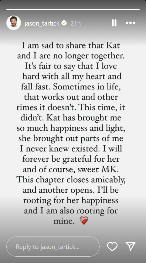 For those interested in reading more about their statements and the coverage of their breakup, further details can be found through the provided references. As we bid farewell to this chapter of their lives, we wish both Jason Tartick and Kat Stickler the best in their individual pursuits of happiness.