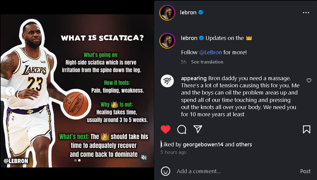Why LeBron James is Taking a Month Off from NBA Games Because of Sciatica on His Right Side.