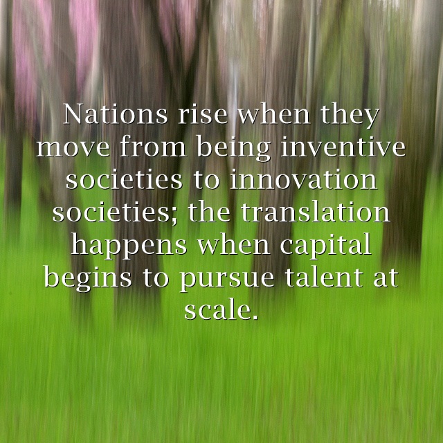 Yes, we will simply remain an inventive society with lots of ideas but limited products or services. But when capital pursues talent, you begin to see the evolution of an innovation society which produces products and services, fixing frictions and uplifting citizens.
