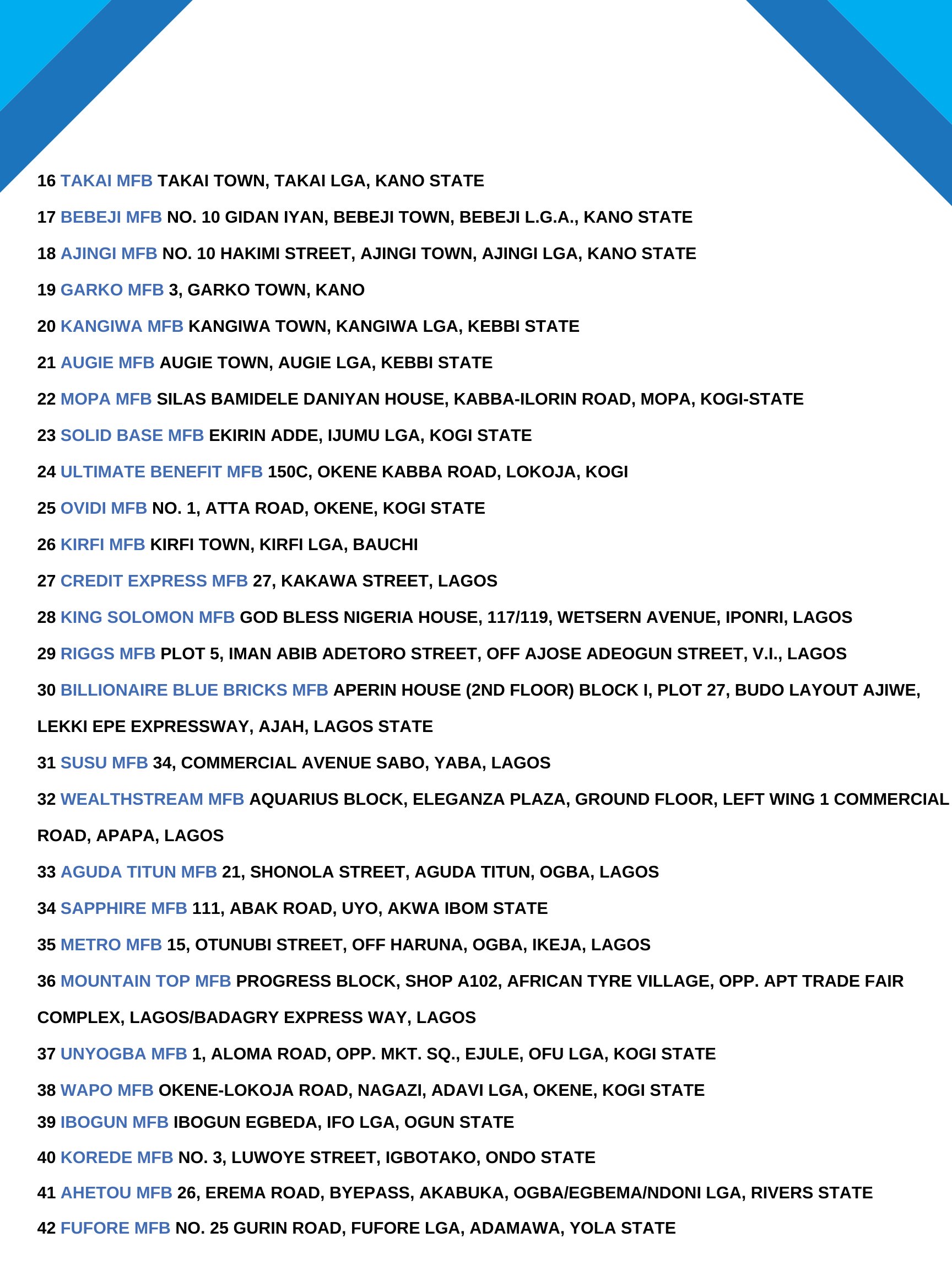 “This is to inform the depositors, creditors, shareholders and the general public that the operating licenses of the under listed forty-two (42) Microfinance Banks (MFBs) have been revoked by the Central Bank of Nigeria (CBN), effective 12th November 2020.