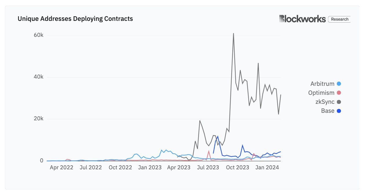 ZKSYNC transactions, and addresses deploying contracts are Surging