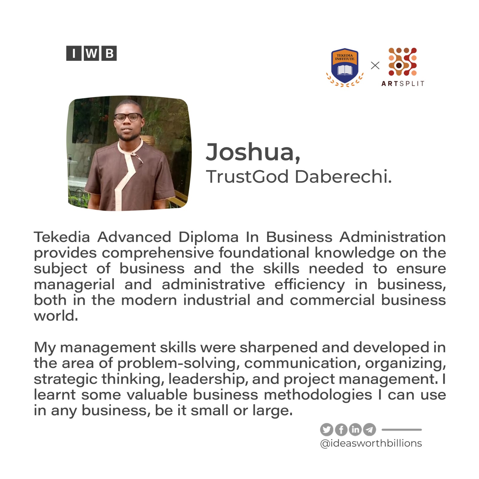 I also want to thank Artsplit which funded these students, making it one of the largest scholarship endeavours in Africa. I thank Onyinye Anyaegbu, Nonso Okpala, Rotimi Awofisibe (ACA,ACITN) – Chartered Accountant, and the whole leadership, for giving Tekedia Institute this opportunity to deepen the capabilities of our undergraduates through Tekedia CollegeBoost, an advanced diploma program in business administration.