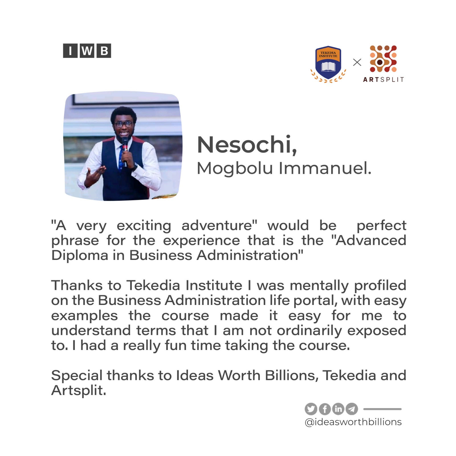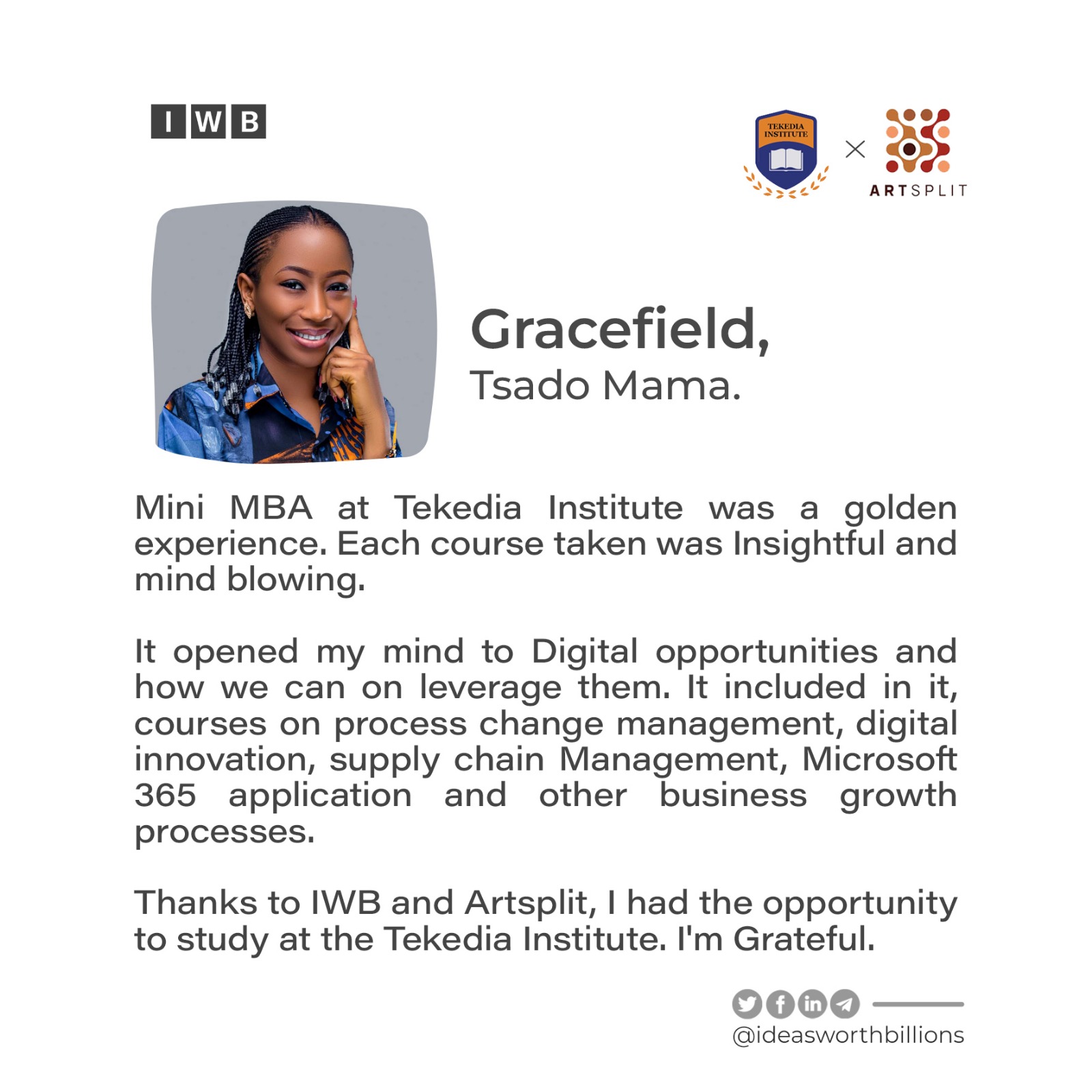 First, I want to thank Ideas Worth Billions for supporting Artsplit Scholars during their studies at Tekedia Institute. That many of you put your time to mentor and support these undergraduates, close to 2,000 of them, and in the end, sought feedback from them, is commendable. I want to thank everyone working in your non-profit. You did this without any compensation in any way; you just showed passion to make those ideas scale.