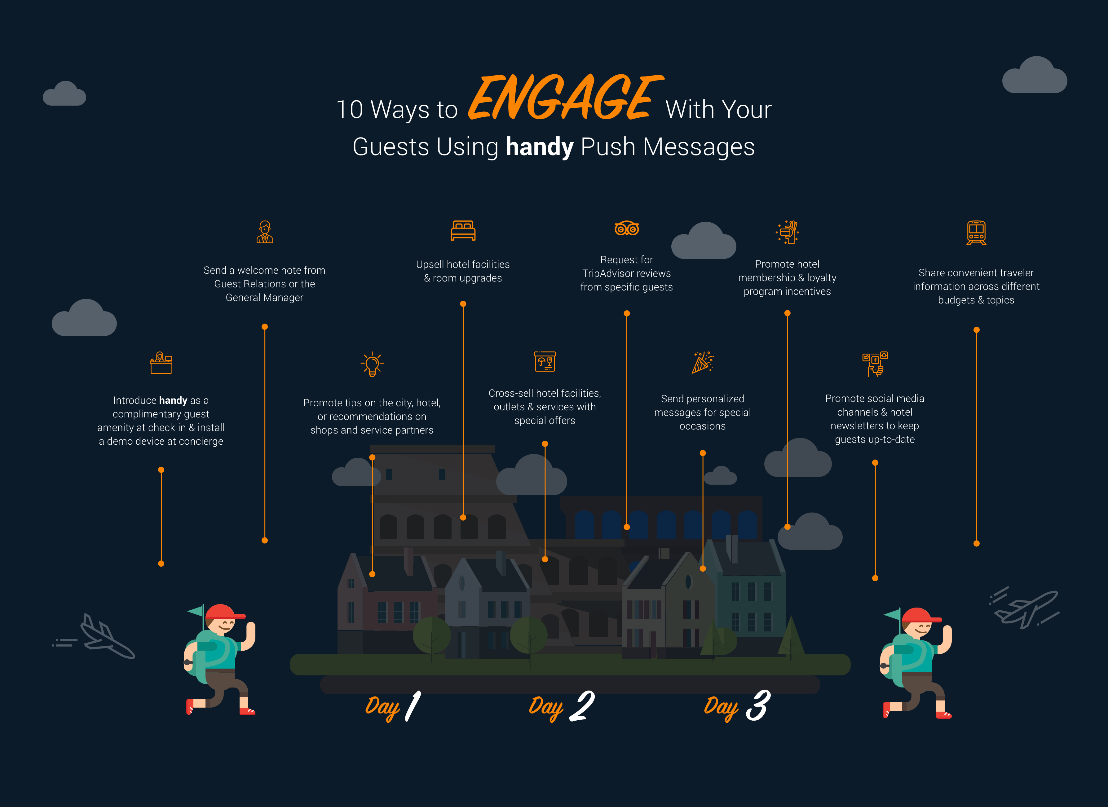 Devices: Through provision of smart devices like ’’Handy’’ the innovative complimentary guest amenity which when implemented as an in-room solution, through its hotel partners, combines the functionality of a personal smartphone and a hotel in-room phone service, into one integrated device, offering guests free internet connectivity, localized content, services and in destination offers. Handy provides all in one controls to personalize room lighting, temperature, curtains, room service requests and entertainment systems while its integration with leading hotel lock systems enables instant access to hotel rooms using Bluetooth LE technology. Also guests have complimentary access to hotel information, city guides, attractions and special offers to make their stay more rewarding and digitized hotel services which are hassle-free with seamless in room services, bill to room features, and express checkout.