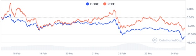 Source: Dogecoin Vs. PEPE Price Comparison, CoinMarketCap