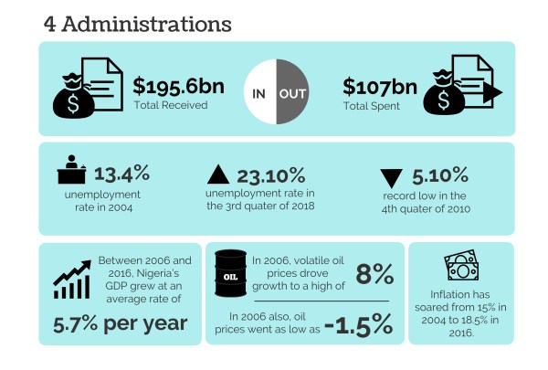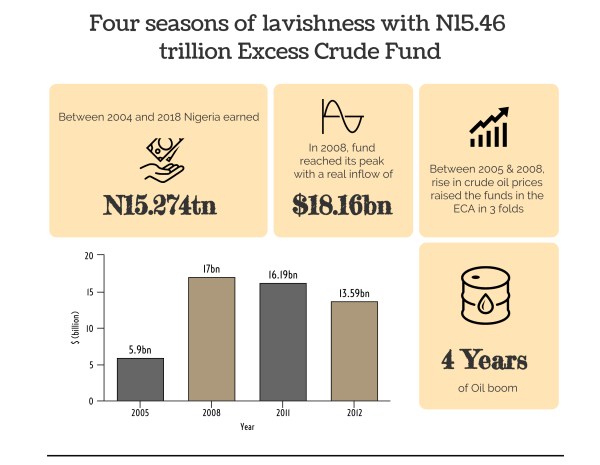 In the last fifteen years, the Nigerian government has spent at least $107.4 billion (the equivalent of N15.46 trillion) from the Excess Crude Account (ECA) under the administrations of Olusegun Obasanjo, Umaru Musa Yar Adua, Goodluck Jonathan and incumbent President Muhammadu Buhari.