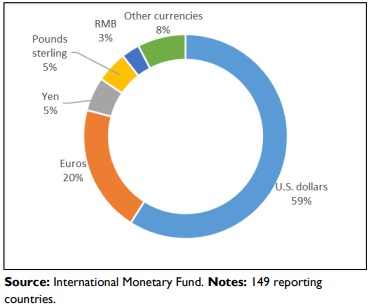 - According to the International Monetary Fund (IMF), the Dollar remains the world’s reserve currency today. Central banks hold around 59 percent of their reserves in U.S. dollars , more than double the collective foreign holdings of euros, renminbi, and yen. That makes it the de facto global currency, even though it doesn’t hold an official title.