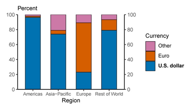 - The U.S. dollar is by a wide margin the world’s most frequently used currency in global trade. From 1999-2019, the USD accounted for 96 percent of trade invoicing in the Americas. In the Asia-Pacific region, the figure was 74 percent, and 79 percent in the rest of the world. Europe is the only exception, where the euro is dominant.