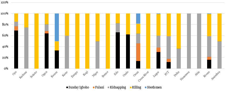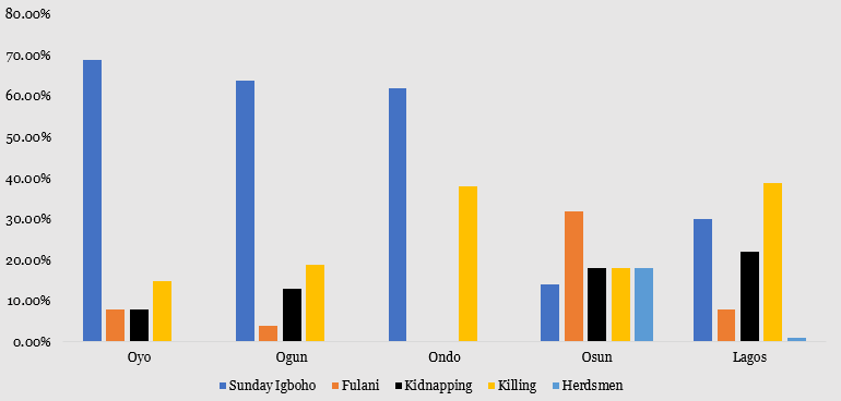 Our analyst notes that adoption of these results and others from academic and applied researches conducted in the last five years would have helped the governments and other stakeholders in solving the crisis and end kidnapping. The failure to take decisive actions led to the emergency of a Sunday Igboho, a Yoruba activist recently. Within the few days of his eviction notice to a Fulani community in Igangan [a town in Oke-Ogun region], he became prominent and people see him as the right person who can eliminate the pains and agonies associated with killing and kidnapping in South West region.