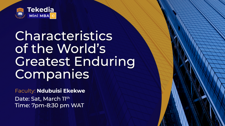 Join us at Tekedia Live, the Live Zoom session of Tekedia Mini-MBA, as we discuss the characteristics of great companies. If you can have those in your business, you become a category-king in your market. Zoom link in the Board. Meanwhile, we have opened registrations for the next edition of Tekedia Mini-MBA; go here, beat the early bird for big discounts .