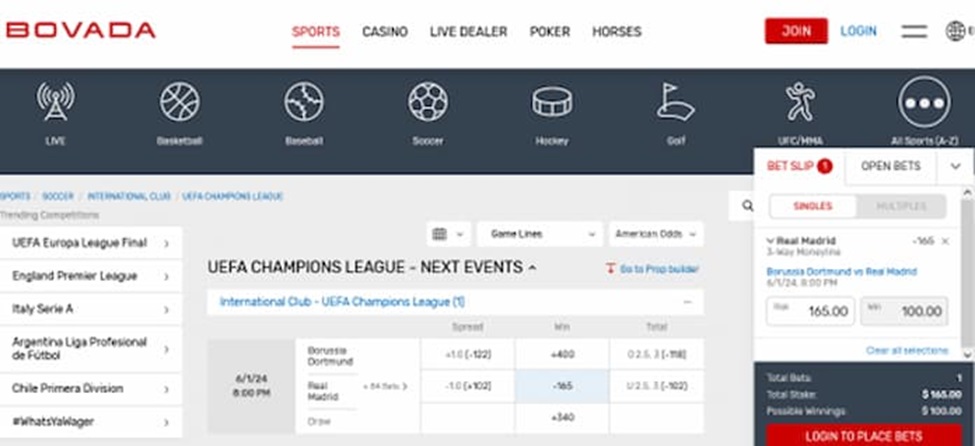 Bovada have over 80 Real Madrid vs Borussia Dortmund Champions League Final markets and once joined there’s a rewards loyalty scheme and even a ‘refer-a-friend’ cash bonus too.