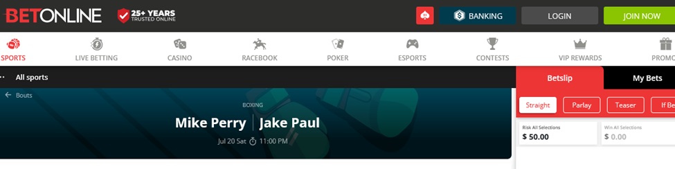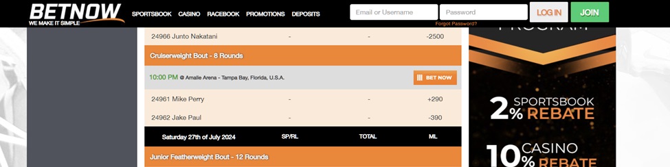 Therefore, with just under 20 years of experience under its belt, BetNow is a fully safe and secure US betting platform, which, due to being based offshore,allows bets on Jake Paul vs Mike Perry in Texas or from ANY US State.