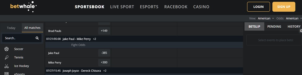 BetWhale is also well worth getting an account with if looking to bet on Jake Paul vs Mike Perry in Texas this Saturday.