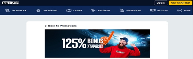 - BetUS — 125% bonus, up to $2,625 on your first 3 deposits