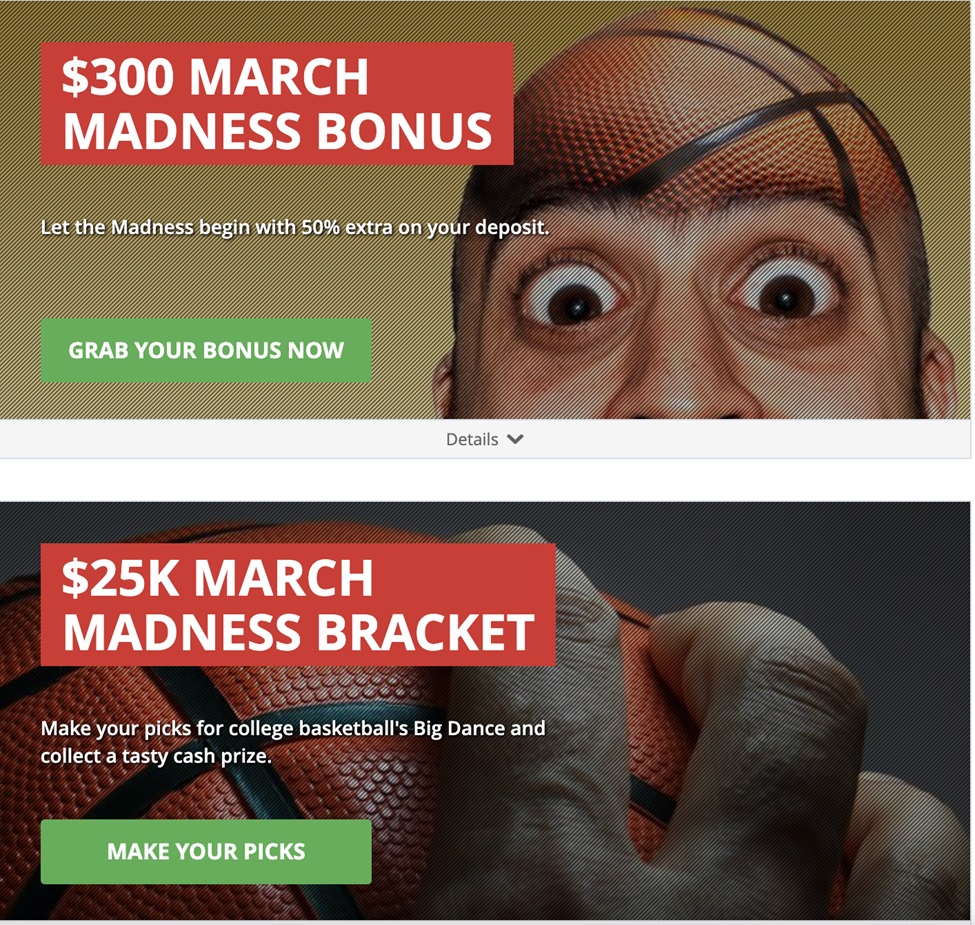 Taking a first look at the website, it’s easy to find where March Madness betting will happen: At their NCAA Tournament page, you’ll find a complete list of bets and props, including the fun and exciting “Bracket Challenge.”