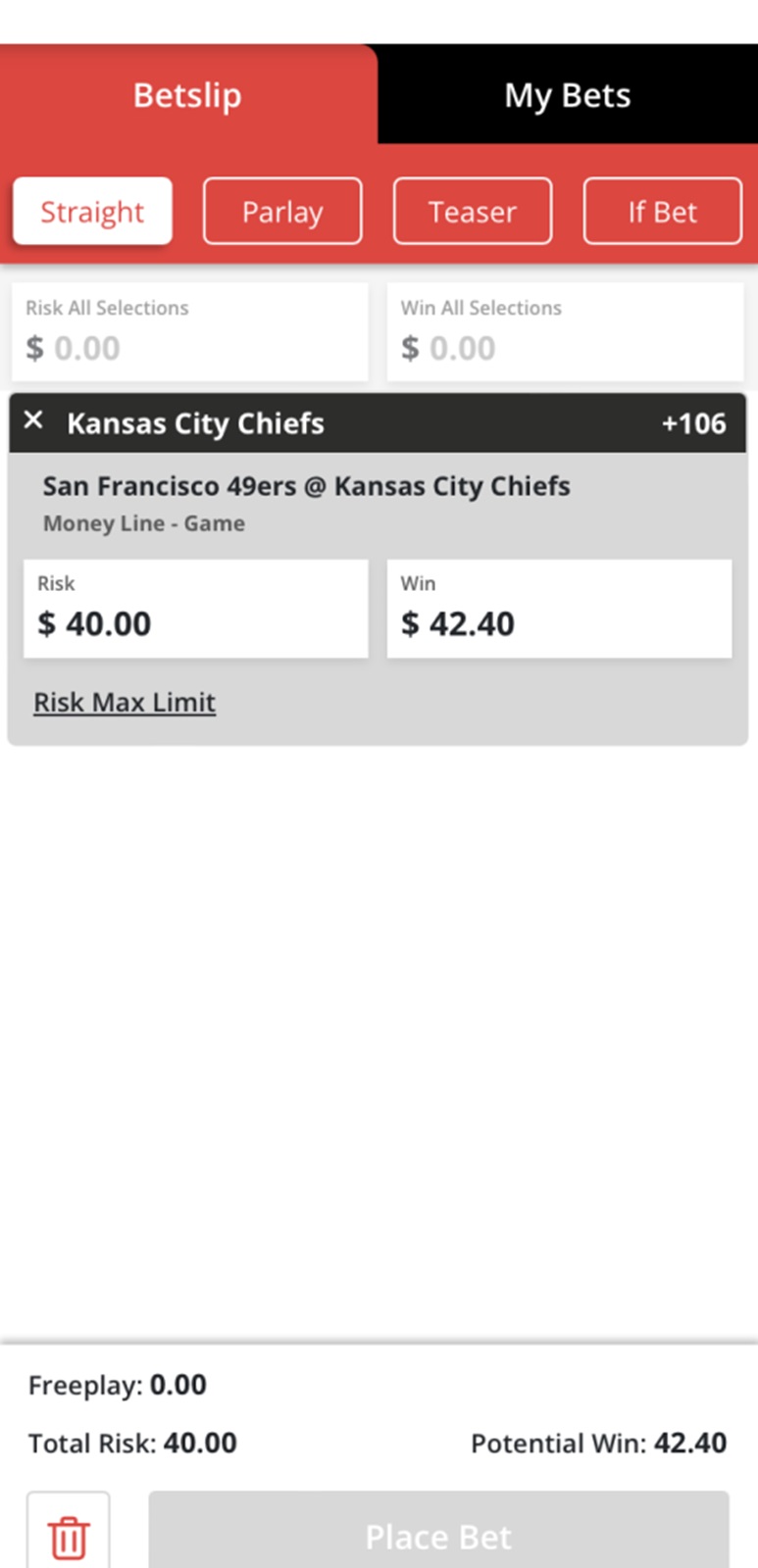 - Select the Super Bowl bet you wish to place