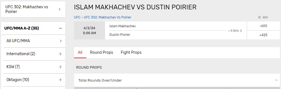 BetOnline already offers the odds of UFC 302, with outright fight betting and all the main associated markets to support the main winner odds. You can, for example, bet on the method of victory, over/under rounds and whether the fight will go the distance.