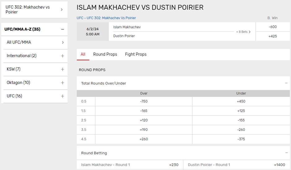 There are already over 60 UFC 302 markets across all 12 fights on Saturday, June 1, so finding your preferred bet is easy.
