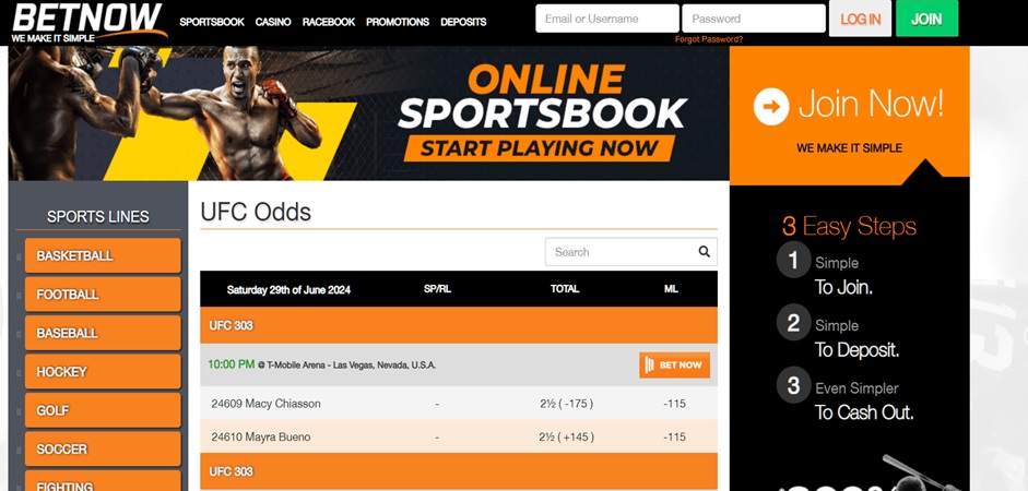 Still wondering how to bet on UFC? Don´t look further, register on BetNow. Launched in 2005, this sportsbook has almost 20 years of experience when it comes to sports wagering and betting on UFC 303 in Texas. Its longevity and established status definitely back up its trustworthiness.